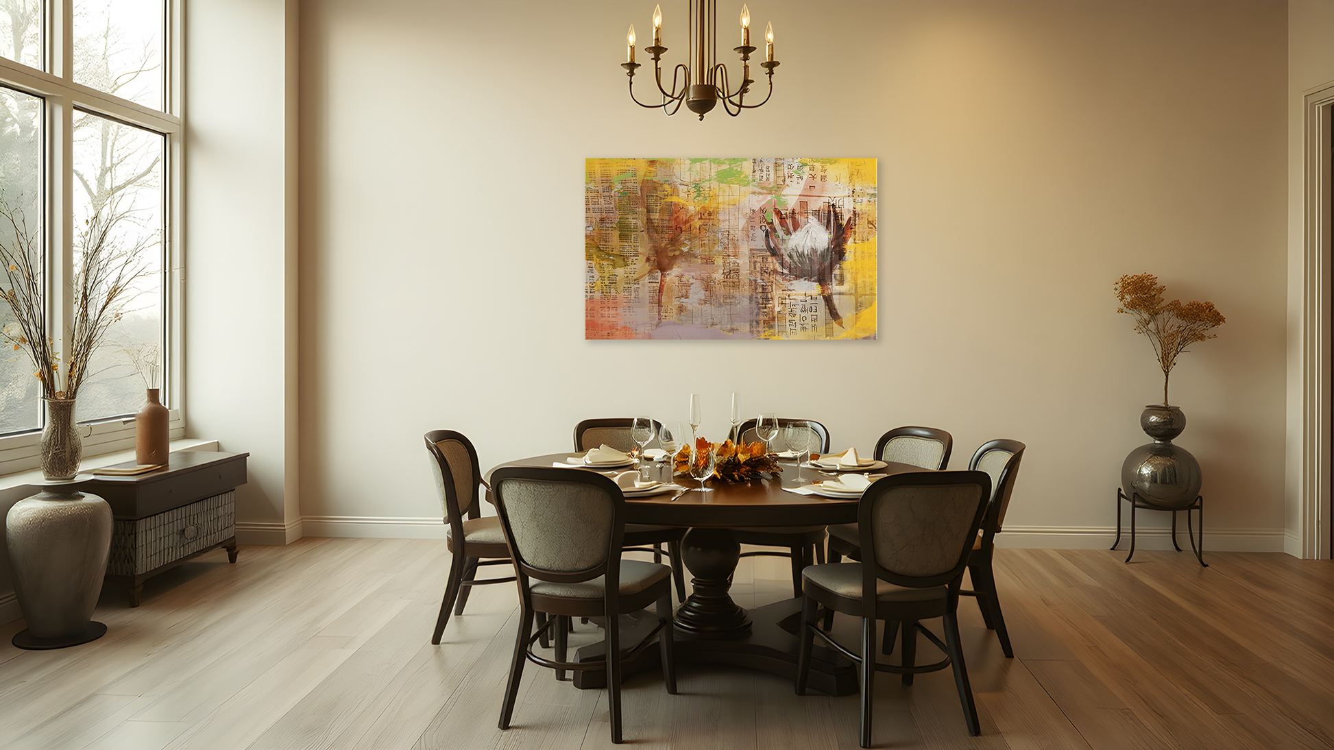 Meanwhile, I have been experimenting with sketching on scraps of Asian newsprint, leaves, flowers and other bits of the Autumn landscape. Two of these are incorporated into this work.